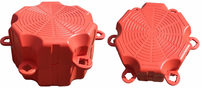 二、浮筒體上部表面采用防滑花紋設計,安全穩固,六角皆為圓弧鈍角造型,避免一般水泥、木制、鐵制設施所常見的危險,例如:滑倒、被碎木屑、銹釘刺傷等。